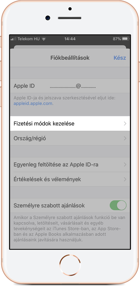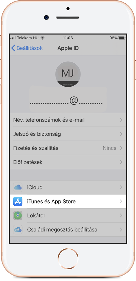 4. Amennyiben már rendelkezel Apple ID -val, és ahhoz bankkártyás fizetést állítottál be korábban, a következő lépésekkel tudod átállítani mobilszolgáltatói számlázásra: