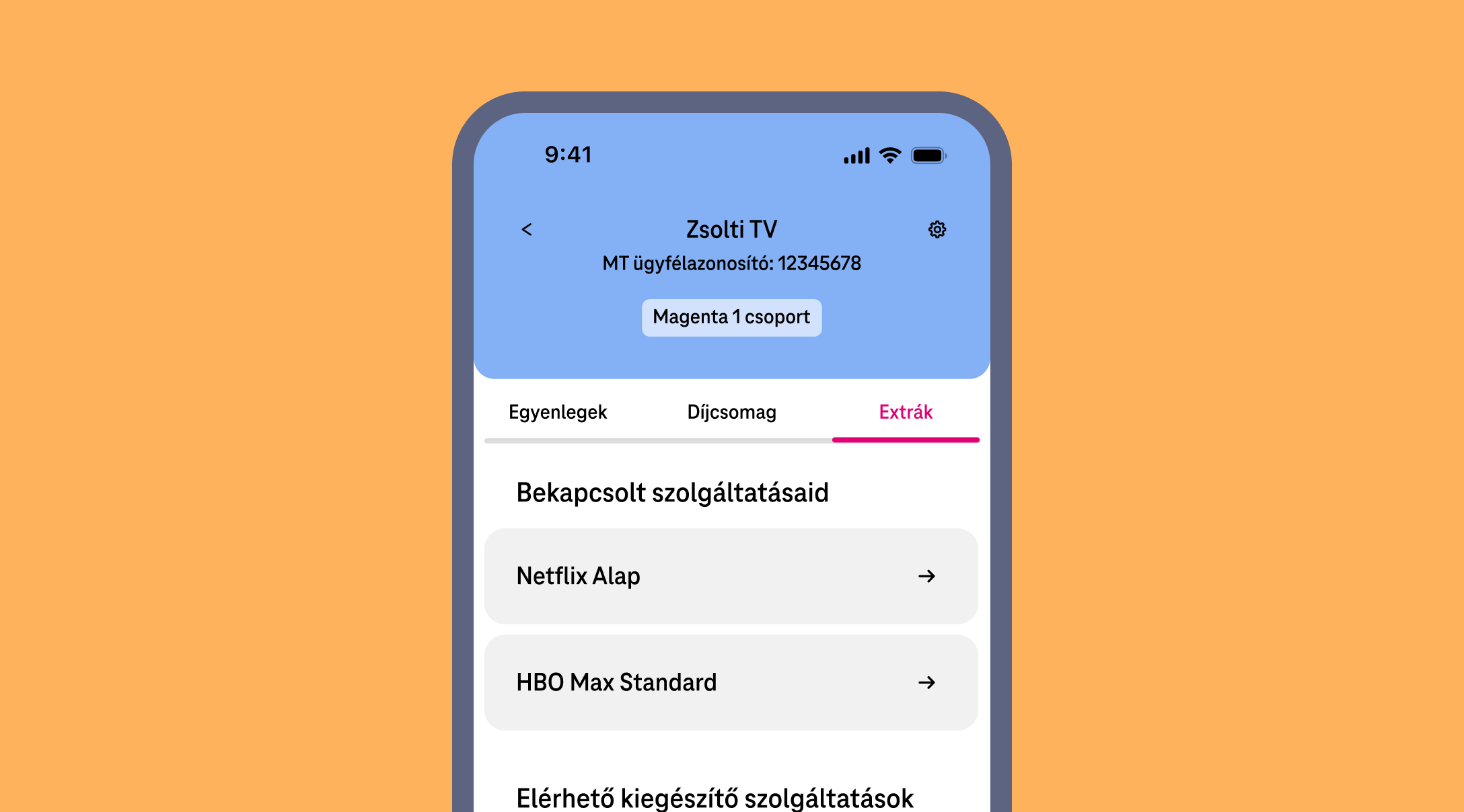 Az Extrák fülön extra netet vehetsz belföldi és külföldi használatra egyaránt, díjcsomagtól függően streaming szolgáltatásokat is aktiválhatsz.