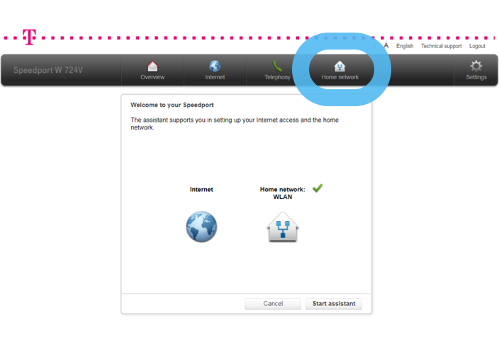 Belépés után válaszd ki a felső menüsorból a „Home Network” menüpontot.