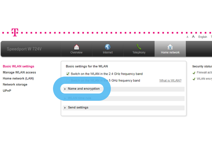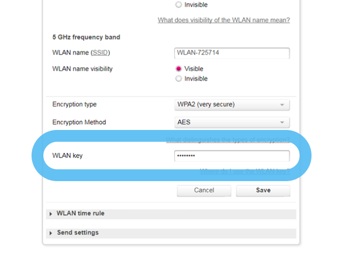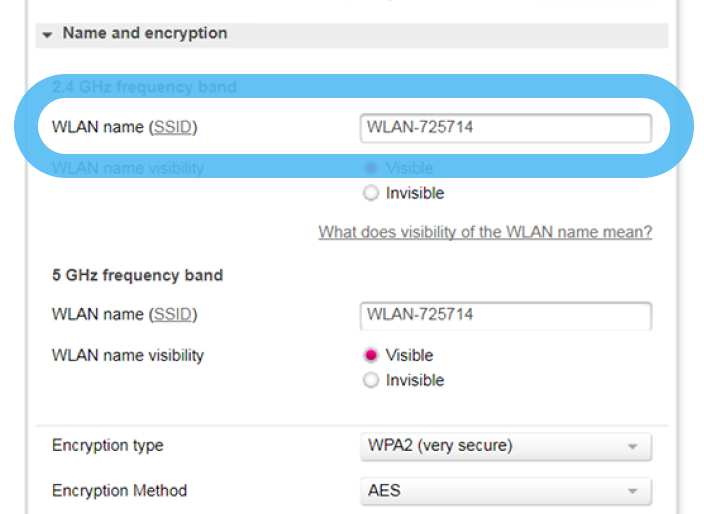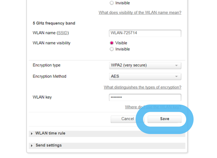 Itt állíthatod be 2,4 GHz- és/vagy 5 GHz-es (dual band) üzemmódot. A „WLAN name” mezőbe írd be a - szabadon választott - hálózat nevet. Ez a név fog megjelenni az elérhető hálózatok listájában.