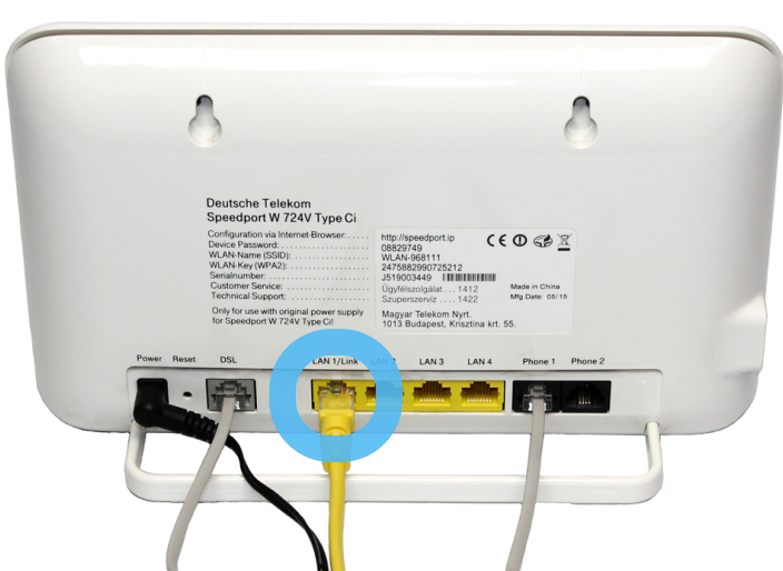 A laptopod vagy mobileszközöd csatlakozásához a digitális elosztó alján lévő címkén találod a „WLAN key” jelszót.