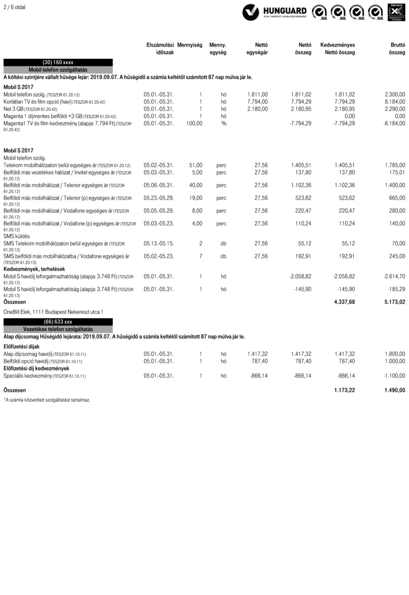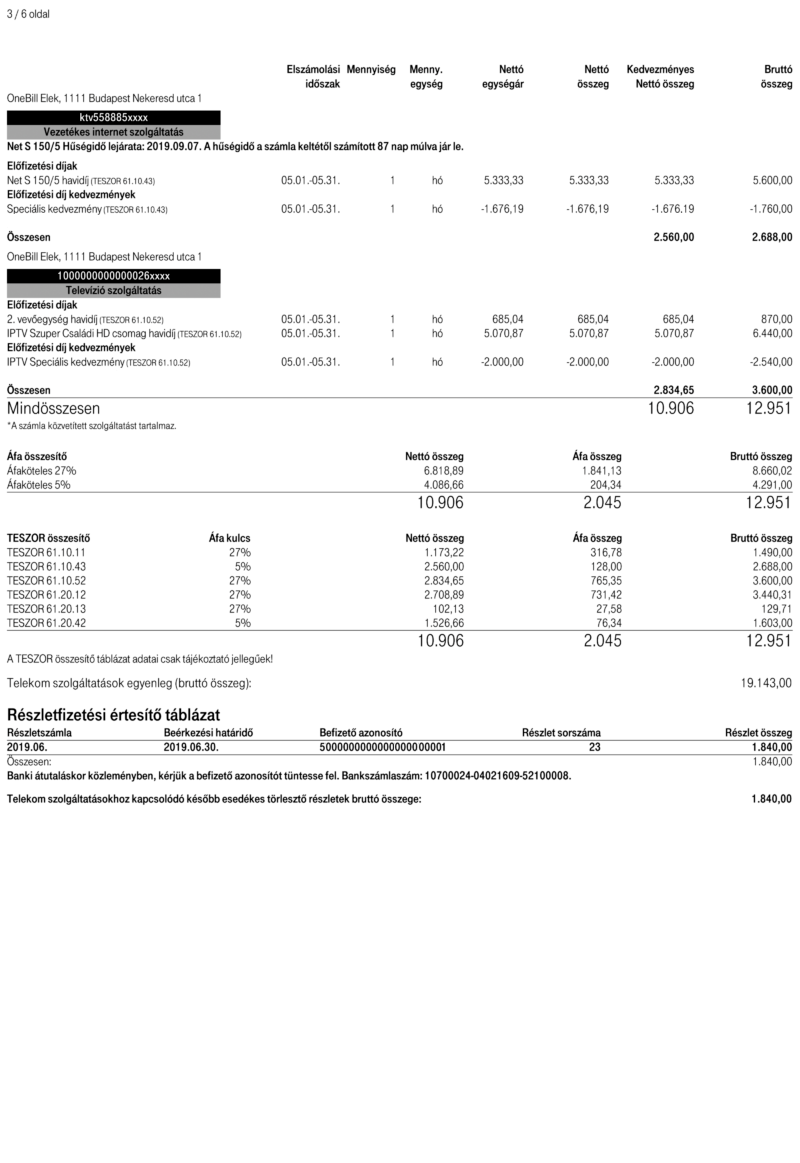 • A kiemelt részekre kattintva további információkhoz juthatsz a számla adott részletéről.